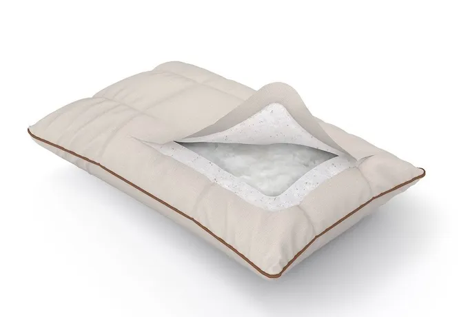 Эта ортопедическая подушка наполнена искусственным пухом – гипоаллергенным материалом, не вызывающим раздражения. Особенность этой подушки не в наполнителе, а в наволочке, имеющей уникальный состав. Она сделана из волокон водорослей, которые положительно влияют на состояние кожи. Кроме того, подушка снабжена хлопково-льняным чехлом – спать на ней приятно и удобно.