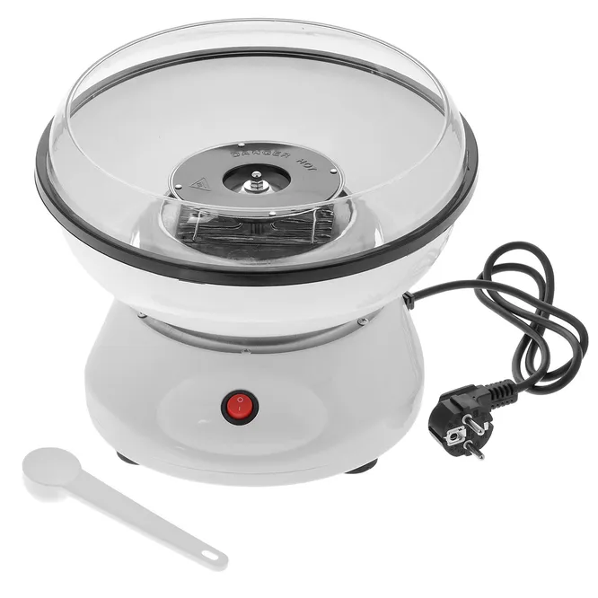 Если ты не хочешь делать «как многие» и ищешь в магазинах техники креативные подарки к Новому году, наш совет – аппарат для приготовления сахарной ваты в домашних условиях. В коробке — сам аппарат в белом корпусе со съемной чашей, мерная ложка и инструкция, как сделать воздушную сладость, даже если раньше получатель никогда этого не делал.