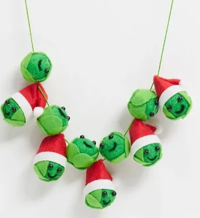 Встречаем: праздничные кочанчики! Не знаем, что вдохновило дизайнера нарядить капусту в новогодние колпачки, но получилось мило и неожиданно. Мягкую гирлянду можно отрегулировать по длине и повесить на елку, шкаф или окно – туда, где гости точно ее увидят и улыбнутся.