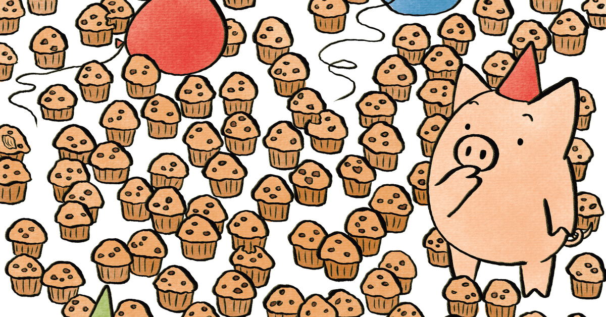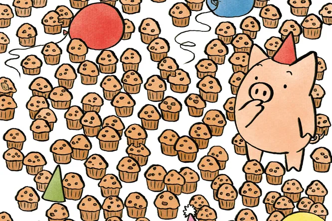 Конечно, поросенку Пигглу надо было дождаться гостей, но он не седержался и попробовал три маффина. Пожалуй, их лучше убрать, чтобы никому не попались. Но удастся ли тебе их заметить?