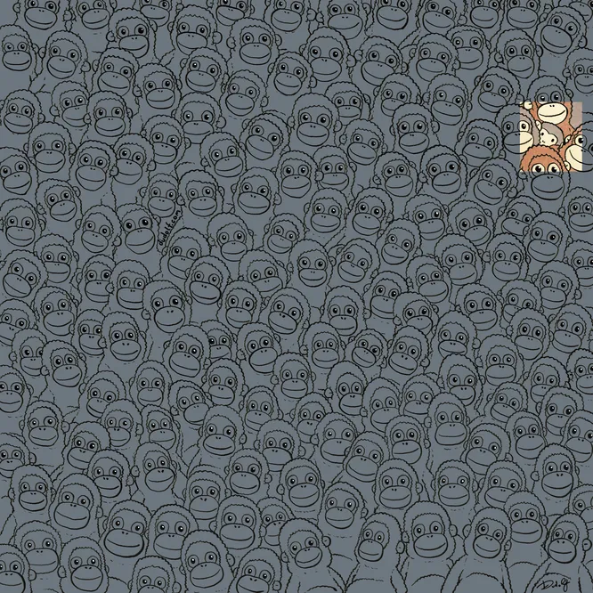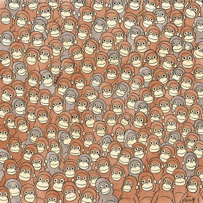 Тест: найди плюшевую обезьянку среди живых орангутангов — это удается только 7% людей!