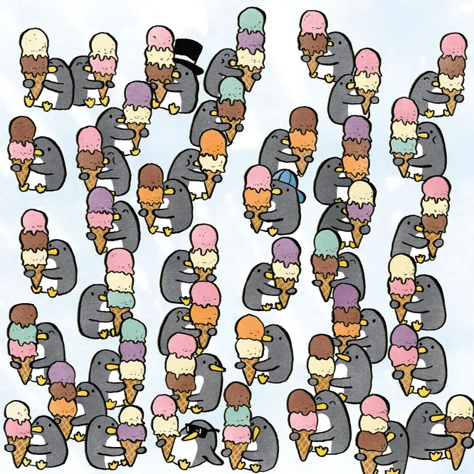 Можешь усложнить задачу: попробуй справиться за минуту. Не нашла мороженое, у которого нет пары? Переверни изображение, чтобы увидеть ответ.