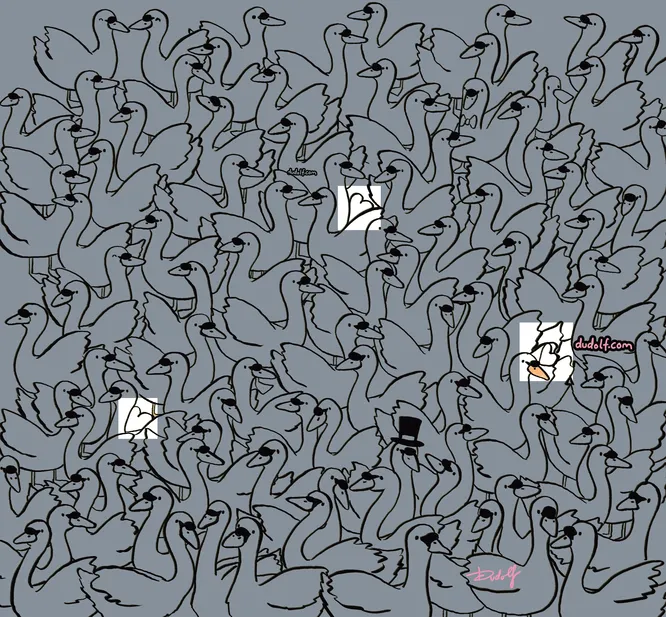 Тест: проверь свою наблюдательность — найди три сердечка среди лебедей!