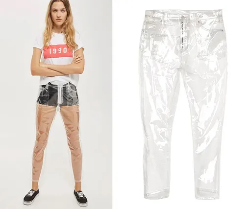 Джинсы из денима — банально, то ли дело из пластика! Лужицы от пота прилагаются к этому «модному» луку.
