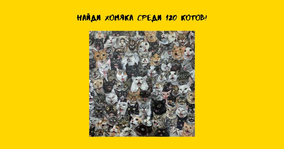 Здесь ровно 120 котов, но сможешь ли ты найти среди них хомяка?