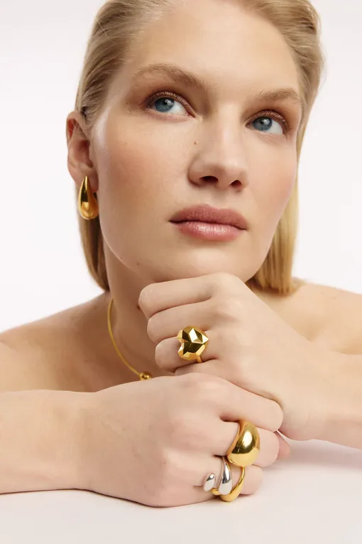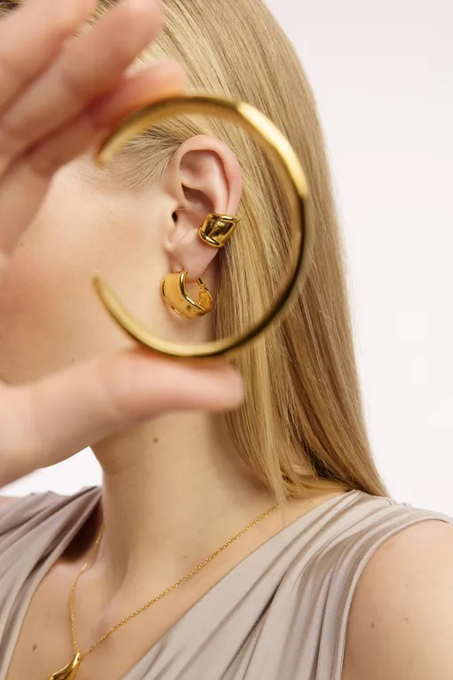 Есть у покрытия вермель и важное преимущество перед золотом — это выразительность формы. Когда изделие выполнено не из золота целиком, бренд может активнее работать с объемом, пластикой и фактурой. Именно поэтому в новой коллекции SOKOLOV сделан акцент на крупные, заметные украшения. Они привлекают внимание, красиво работают в образе и дают тот самый простор для работы с модным образом, которого многие ждут от ювелирных покупок.