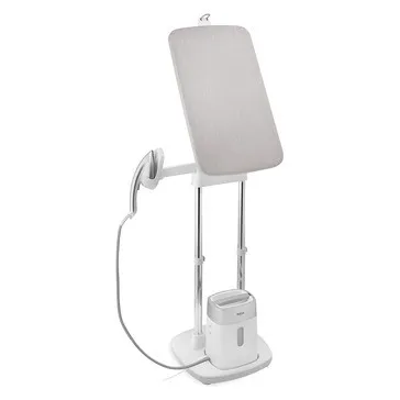 С прибором удобно работать: среди 8 режимов можно найти подходящий для разных материалов – переключаться между режимами легко и просто. Телескопическую регулируемую стойку легко подогнать под свой рост, а гладильная доска в комплекте позволяет отпаривать не только в вертикальном, но и в горизонтальном положении.