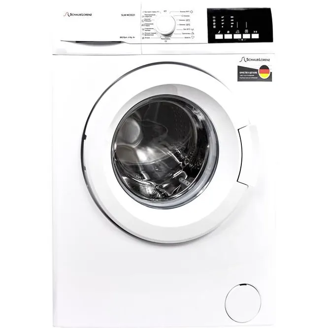 Узкая стиральная машина автомат рассчитана на максимальную загрузку до 4 килограммов сухого белья. У нее удобное электронное управление со всеми нужным режимами и возможностью самостоятельного выбора температуры, скорости и длительности стирки. Устройство отличается скоростью отжима до 800 оборотов в минуту, поэтому машина работает тихо и не издает никаких посторонних звуков. Ее минималистичный дизайн и компактные размеры позволят разместить Schaub Lorenz SLW MC5531 даже в небольших помещениях с ограниченным пространством.