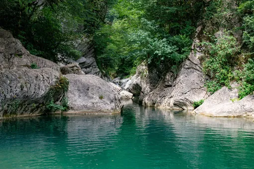 После гор отправляйся в сторону Адлера. Расположенный около поселка Красная Воля, Кудепстинский каньон завораживает своими пейзажами: бирюзовыми озерами, таинственными пещерами и уединенными тропинками. Дойти до каньона не так просто, поэтому там не бывает наплыва туристов. Но те, кто преодолевают крутые склоны ущелья, получают незабываемые впечатления — и фотографии.
