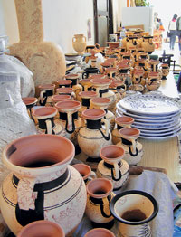 Закуска Аристи: «замок» из печеных помидоров, травы рока, творога, мяты и приправ. Голубцы, фаршированные чечевицей и мятой (с белым вином). Скьюфихкта – домашнее тесто в мясном бульоне, с тертым овечьим сыром и зеленым перцем. Фуриарико – мясо дикой козы с медом и тимьяном, печеный картофель (с красным вином). Горячий пирог из инжира, с мороженым и корицей. Кали орикси! (Приятного аппетита!) |