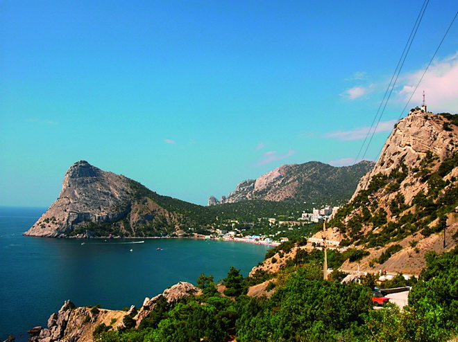 Коктебель означает «Край голубых вершин». Волошин построил на берегу моря Дом поэта, где гостили Грин, Эренбург, Булгаков, Пришвин, сестры Цветаевы, Мандельштам, Алексей Толстой, Брюсов, Чуковский... И после смерти Волошина бухта хранит память о нем: с одной ее стороны профиль поэта виден в очертаниях Карадага, с другой, на горе Кучук-Енишар, Волошин похоронен. Другое знаковое место – Карадаг, «Черная гора», потухший вулкан Юрского периода. Это заповедник, нужно заплатить за вход или заказать экскурсию. Тропа начинается в конце пляжа, идет через плато Тепсень с раскопками древнего города, мимо хребта Кок-Кая, ущелья Гяур-Бах, горы Хоба-Тепе. Сказочной аркой из моря поднимаются Золотые ворота.
