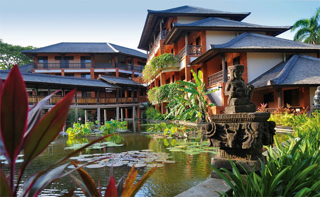 Городок на Бали состоит из пяти деревянных корпусов, характерных для традиционной индонезийской архитектуры. Роскошный отель, буквально утопающий в зелени и ароматах тропических цветов, раскинулся на берегу Индийского океана на площади больше десяти гектаров! На следующий день после приезда, не успев прийти в себя после долгого путешествия, отдельные представители VOICE даже умудрились заблудиться во всем этом великолепии.
