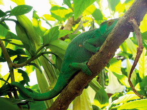 острове мира, обитает 90% известных ученым видов лемуров. | А заповедник «Мантадия» – дом для хамелеонов. Здесь их разрешается брать в руки и кормить кузнечиками. |