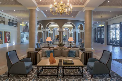 Рассказываем подробнее: во-первых, убранство отеля – это сплошь роскошь – красота колоннад, мозаики, водопады и бассейны впечатляют с первого взгляда.