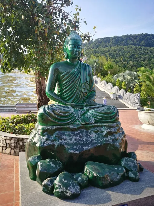 Но съездить в пагоду стоит – из-за потрясающего вида с горы, где стоит храм, на море и из-за огромной статуи вьетнамской богини Куан Ам, которую называют Буддой в женском обличье. На входе в храм вас встретит статуя Будды — из цельного куска нефрита!