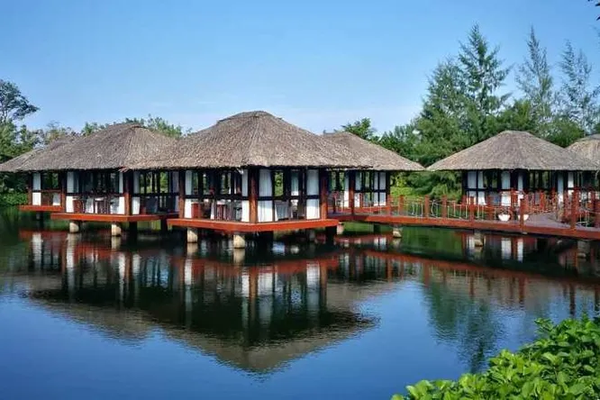 На огромной территории комплекса — несколько баров и ресторанов, где гости проводят вечера. Днем можно размяться на теннисном корте, за игрой в гольф на собственном поле Vinpearl или расслабиться у одного из нескольких бассейнов и в спа-комплексе.
