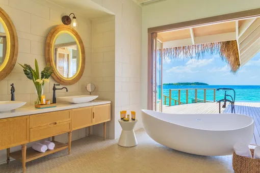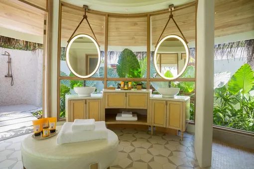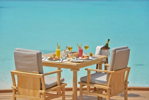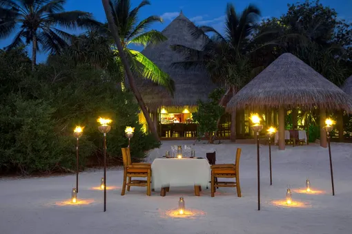 На территории гостиницы поместились три ресторана и два бара. Самый примечательный, пожалуй, BA’THELI — единственный в мире ресторан, расположенный внутри изящной деревянной лодки. Кухня здесь мальдивская, вдохновленная многовековой традицией островов торговать кокосами, сушеной рыбой в обмен на рис и специи с индусами и ланкийцами. Лодки, которые так и назывались ba’theli, плавали с ценными товарами по стране и распространяли знания о дальних странах их кухне и образе жизни. Здесь у вас появится отличный шанс позволить команде отеля показать свой профессионализм в полной мере. Заведите с официантом или хостесс беседу о меню, и вы тут же услышите неотрепетированный и очень увлекательный рассказ о местной кухне. Соседние заведения могут похвастаться не менее сногсшибательными кулинарными находками и привычными каждому европейцу блюдами, но BA’THELI — это не просто еда, а гастрономический опыт, о котором вы будете с гордостью рассказывать дома.