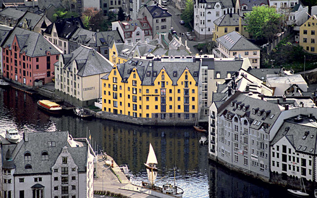 Кто-то называет Олесунд Северным Парижем, а кто-то – Норвежской Венецией. В январе 1904 года тогда еще застроенный деревянными домами город сгорел буквально дотла (удивительно, но из 10 000 жителей погиб лишь один). За три года все было выстроено заново в стиле модерн. Простые формы и линии, с одной стороны, и богатый декор зданий – растительные узоры, изображения животных, извилистость оконных и балконных переплетов – с другой. В здании бывшей аптеки – Центр югендстиля: там подробно расскажут о строительстве, а еще покажут немного наивное, но очень трогательное интерактивное шоу о пожаре 1904 года.