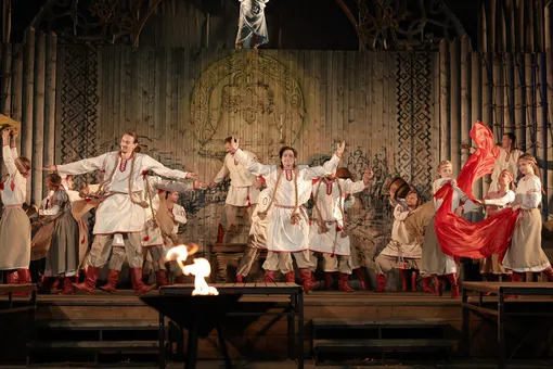 Заглянем на главную площадь — здесь у стен Кремля расположился уличный театр «Садко», стилизованный под древнюю деревянную крепость. Масштабные декорации, яркие спецэффекты, красочные костюмы и зажигательные танцы — спектакли ежедневно погружают зрителей в атмосферу средневековой национальный культуры.
