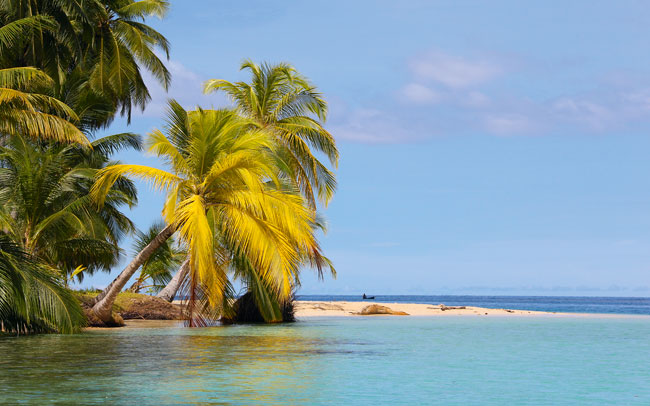 Благодаря местоположению страна интересна кому чем. Мировой экономике – Панамским каналом. А мне – пляжами вдоль всей страны, омываемыми двумя океанами. Утром купаешься в одном, а в полдень, после получасового перелета, в другом. И наоборот. Пока не запутаешься: Тихий – Атлантический, Атлантический –Тихий. Я – запуталась! На тихоокеанской стороне все побережье – пляж. В названии любого поселения непременно есть слово Beach. Со стороны Карибского моря пляжей больше на Востоке. Море поражает прозрачной изумрудной водой. Особенно когда летишь над крохотными островами, окаймленными полоской песка.