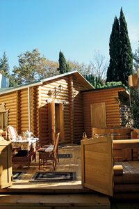 Центр здоровья в «Лазурной» – это тренажерный зал, солярий, открытый и закрытый бассейны, русская, финская и турецкая бани, разнообразные массажи... После пляжа так и тянет сюда зайти. Выбрав пенный массаж в хаммаме, я отдаю себя в крепкие, но нежные молодые руки в «ежовых рукавицах» (30 у.е.; 1 у.е. = 36 руб.). Многим эта процедура наверняка знакома. Но здешняя особенность в том, что после массажа-пилинга тебя обмазывают медом – каштановым, горным, экологически чистым (10 у.е.). И вот я, уже завернутая в простыню и толстое полотенце, с чашечкой травяного чая, сижу и жадно впитываю в себя все ценные вещества и микроэлементы, какие только есть в этом волшебном продукте, сотворенном неутомимой кавказской пчелой... В русской бане тебя тоже с головы до ног натрут медом, а кроме того, обработают пахучими веничками, окунут в холодную бочку или даже обольют ледяным шампанским... А дальше ты будешь млеть в другой бочке, согреваясь в горячей, с множеством трав воде (от 5 до 45 у.е.). Глубокое очищение и питание кожи, пилинг, массаж, ароматерапия, гимнастика для сосудов... Ну просто чудо-избушка! В «Лазурной» работает тайка, обученная массажу при монастыре Ват По. Грех этим не воспользоваться. Хочешь ли полной релаксации или восстановления подвижности и гибкости тела, общего оздоровления или коррекции фигуры – из десятка вариантов непременно подберешь то, что нужно именно тебе. «Гармоничное тело», по-моему, неплохой выбор для первого раза (1 час – 90 у.е.).