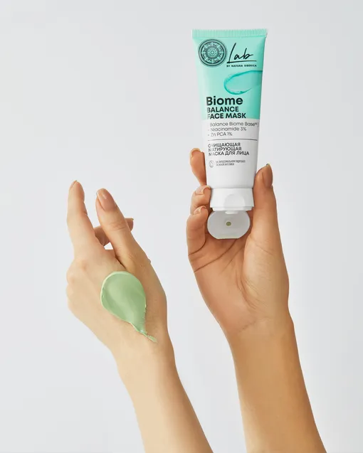 Очищающая матирующая маска для лица Balance Natura Siberica, LAB Biome на ферментированном экстракте курильского чая глубоко очищает и успокаивает проблемную, склонную к жирному блеску кожу.