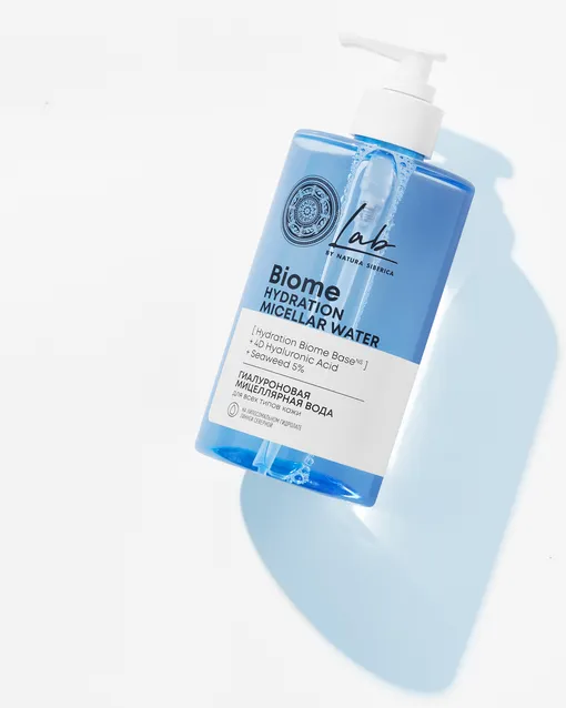 Гиалуроновая мицеллярная вода для всех типов кожи Hydration Natura Siberica LAB Biome. Биом-база строится на ферментированном экстракте кладонии снежной с лизатами лакто- и бифидобактерий. 4D-гиалуроновая кислота увлажняет и защищает от дегидратации на всех уровнях. Гликопротеины северной ламинарии стимулируют выработку собственного коллагена, улучшают текстуру кожи.