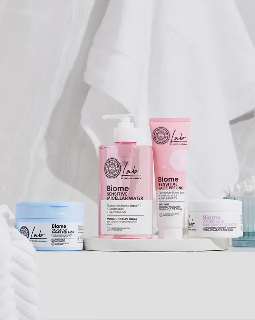 В составе средств линии LAB Biome современные R&D-разработки Natura Siberica – ферментированные экстракты сибирских растений и липосомальные комплексы, которые активно восстанавливают микробиом и местный иммунитет кожи, эффективно доставляют активные компоненты к клеткам и обеспечивают максимально комфортное очищение и уход.