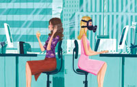 КАК ДОЛЖНО БЫТЬ: Так уж получилось, что неприятные запахи переносить труднее всего. Глаза можно закрыть или отвернуться, уши – заткнуть, а дышать в любом случае надо. Воинственно политкорректные американцы вообще запрещают применение сильных ароматов в публичных местах, приравнивая духи к сигаретному дыму. Это, конечно, не наш метод. Но на рабочем месте ничего распылять нельзя – ни духи, ни лак для волос, ни – упаси боже! – поправлять маникюр. Если это совершенно необходимо – выйди в туалет. Хотя некоторые скорее согласны терпеть самый невыносимый парфюм, чем «натуральные» запахи тела, не знакомого с дезодорантом. Но это уже вопросы не офисного этикета, а элементарной гигиены.