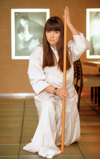 МАРИЯ СОБОЛЕВА (23), первый кю по дзедо К дзедо я пришла спонтанно, никогда не мечтала ни о Японии, ни об экзотических видах боевых искусств. Просто ходила в это же помещение на аэробику и случайно познакомилась с ребятами, которые здесь же занимались дзедо. Вот они однажды и позвали посмотреть на их тренировку. На тот момент, когда я пришла в группу по дзедо, там занималось достаточно мало учеников. Странно, но люди вообще как-то плохо задерживаются в дзедо. Наверное, это связано с тем, что они не видят цели. Вот в иайдо народ идет неплохо. Возможно, потому, что это красиво – катана (сабля) смотрится в руках очень экзотично! А дзедо сложнее понять – палка и палка! Суть дзедо та же, что в кендо и иайдо: защитить себя, уничтожить противника. Отличается только предмет оружия и суть защиты, которая была сформирована на основе самурайских обычаев. А они были весьма строгими. Одно из средств психологического давления – так называемое звуковое сопровождение. Когда мы учились кричать определенные звуки, типа «ей!», во время атаки, у нас получалось плохо, такое визжание по-девчачьи. Но потом нам показали, как надо кричать, мы так испугались! Тренер в этот момент был похож на настоящего монстра в лучших традициях японского аниме – с бешеными глазами и брызжущий слюной. Вот так мы и поняли, что значит психологическое давление! Очень сложно было привыкнуть к специальной форме для занятий. Ведь приходится надевать специальные брюки, юбку, курточку, завязывать пояс. На самом деле это целое искусство – одеться в форму. Поначалу это все очень мешало! Но теперь я привыкла. И понимаю, что если все правильно завязать и надеть, то будет очень комфортно заниматься. А после занятия нужно всю эту форму еще и сложить красиво. Сложно было вникнуть поначалу. Но со временем пришло осознание того, как все происходит в этом боевом искусстве. Конечно, во мне многое поменялось с тех пор, как я стала заниматься дзедо. Но я не могу точно сказать, произошло ли это под влиянием моих занятий дзедо или просто в силу моего переходного возрастного периода. Ведь я начала заниматься в 19 лет, а сейчас мне 23. И я понимаю, что еще многому нужно учиться. ДЗЕДО – это искусство фехтования сравнительно коротким посохом, используемым против меча. Тренировки проходят в виде отработки парных упражнений. Упражнения в дзедо более разнообразны, чем в иайдо. И в связи с тем, что тренировки происходят в паре, на первый план выходят такие понятия, как расстояние, время, инициатива. Дзедо возникло в 16 веке. Согласно легенде, один непобедимый воин бросил противнику вызов и проиграл поединок. Уязвленный своим поражением, воин удалился в храм, где усиленно тренировался и медитировал. Однажды ему было видение, после которого он постиг не только секреты владения шестом (бо), но и преимущества более короткого посоха. Так родилось дзедо. Легенда легендой, но в 20 веке этот вид боевого искусства получил достаточно широкое распространение. |
