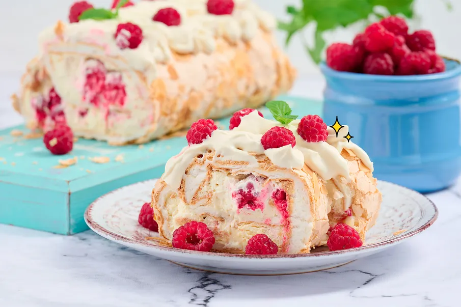 Самый воздушный: простой рецепт меренгового рулета с малиной и маскарпоне