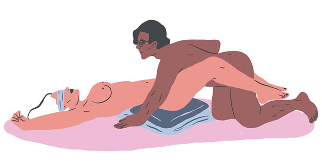 Ляг на спину с завязанными глазами, подложи под бедра подушку — и пусть он доставит тебе удовольствие любым удобным способом! Можно делать это, сидя в кресле, тогда он будет стоять на коленях (некоторым даже приятнее, если ты этого не увидишь).