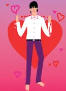 В прыжке повернись спиной к своей девушке. Твои руки по-прежнему остаются на бедрах. Подвигай руками вверх-вниз, поглаживая себя. Оглянись, кинув на любимую самый страстный взгляд, на который ты когда-либо был способен, и звучно стукни себя кулаком в грудь.