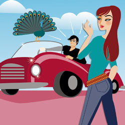 Психологи утверждают, что после недвусмысленного урчания и мяуканья со стороны девушки любой уважающий себя самец начинает распускать... нет, не руки, а перья!