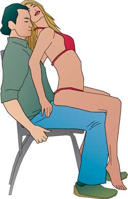 В домашних условиях ты вряд ли найдешь крепкий безопасный шест от потолка до пола, но он тебе и не нужен: лэп-дэнс – это танец с обычным стулом. Именно на нем должен находиться твой партнер... Для того чтобы не нажить себе травм в таком нелегком «спорте», как стриптиз, тебе следует физически подготовиться, к тому же это и своеобразный вид фитнеса – все виды мышц задействованы в танце. Главный секрет лэп-дэнса в том, чтобы без конца дразнить партнера – он не имеет права до тебя дотрагиваться, как бы ему ни хотелось. Ты должна довести его до состояния изнеможения и жгучего желания заняться с тобой любовью немедленно.