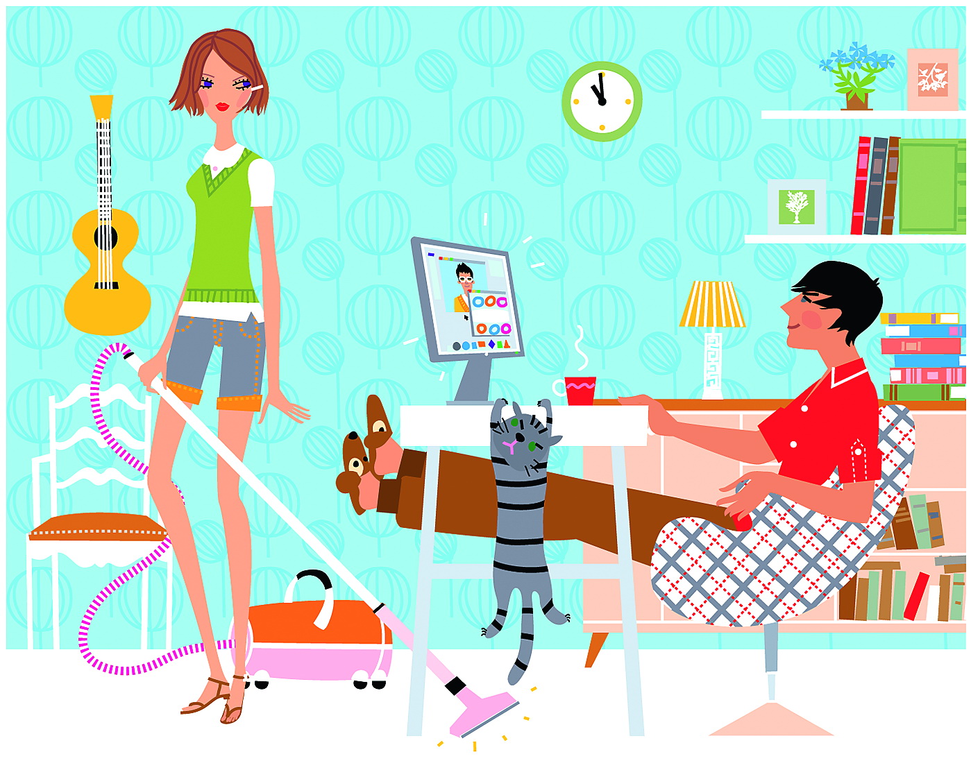 – А что это ты делаешь? — спросила М., заглянув в комнату из кухни с тряпкой в руке.