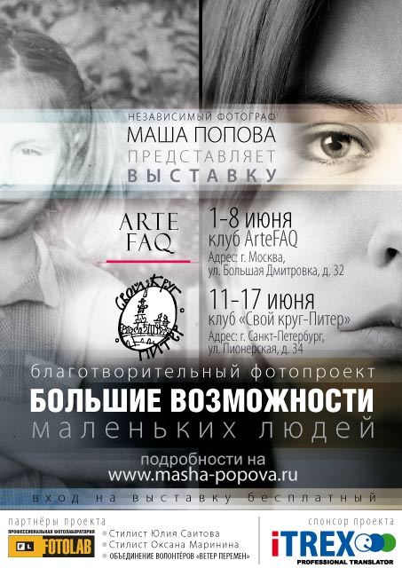 1 июня откроется выставка в рамках авторского благотворительного фотопроекта «Большие возможности маленьких людей».