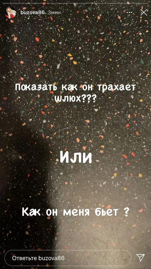 Завершающим штрихом стал вопрос теледивы, адресованный подписчикам: «Показать, как он трахает шлюх или как он меня бьет?».
