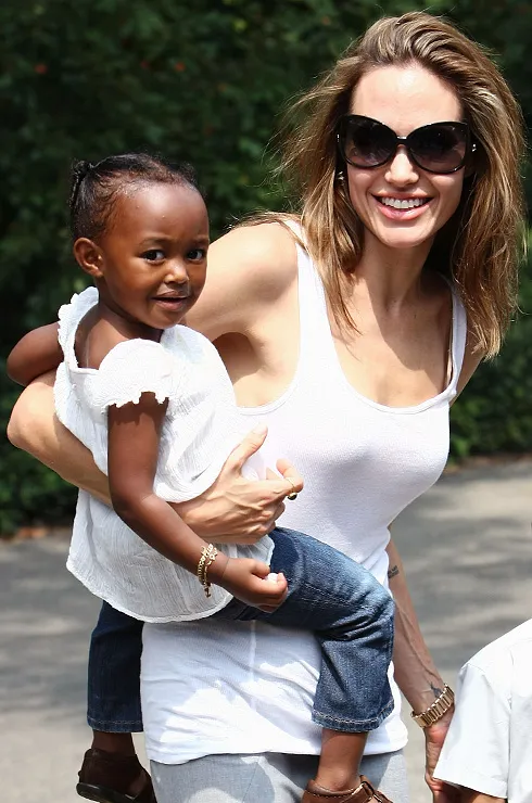 В июле 2005 года в рамках гуманитарной миссии ООН Джоли отправилась в Эфиопию, где увидела крошечного младенца (Захара родилась в январе того же года), страдающего от голода и обезвоживания. Анджелина узнала, что мать девочки умерла от СПИДа, но малышке вирус не передался. Актриса удочерила ребенка, а после Брэд Питт также оформил документы на усыновление. Спустя два года после этого неожиданно появилась биологическая мать Захары, которая утверждала, что все время была жива, здорова и хочет вернуть ребенка. Джоли-Питты уладили конфликт, и Захара осталась в семье. Позже подросшая Захара выразила желание познакомиться с биологической матерью. Тем не менее своими настоящими родителями Захара считает Брэда и Анджелину.