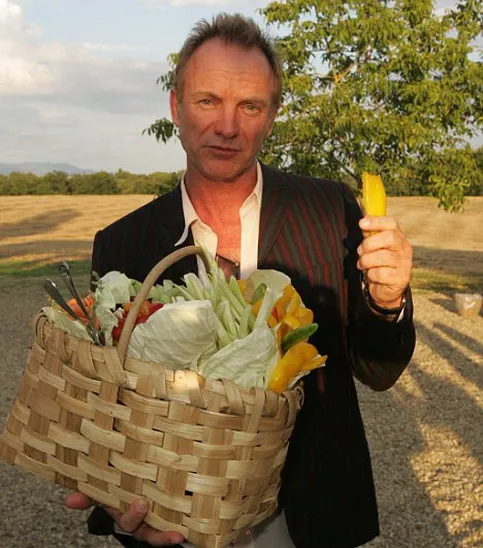 Изменить мир при помощи экологически чистого питания задумал певец Стинг с супругой. Семейная пара выращивает овощи и фрукту на вилле в Италии и предлагает приобрести «корзину от Стинга», за незамысловатым названием которой скрывается натуральный джем, желе из шалфея, свекольные приправы, сельский пирог и бальзам из черной смородины.