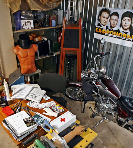 Самые известные иллюзионисты страны допустили нас в святая святых – свою мастерскую. Секреты трюков выведать не удалось (а о том, что мы все-таки подсмотрели, придется молчать – с фокусниками шутки плохи). Тем не менее свой рабочий стол Илья, Андрей и Сергей нам продемонстрировали.