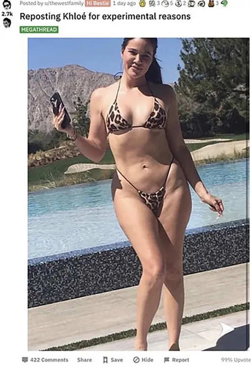 А в начале 2021 года отличилась Хлое Кардашьян. Интернет-пользователи давно шутили над средней из знаменитых сестер — мол, в жизни она совсем не похожа на отфотошопленные фото из своего Инстаграма (Социальная сеть признана экстремистской и запрещена на территории Российской Федерации). А тут в соцсети вдруг «случайно» прокралось фото Хлое в купальнике без ретуши. Да, выглядит на нем она отлично — многим молодым мамам такая стройная фигура только снится! Вот только на других снимках Кардашьян совсем другая. Из-за этого Хлое пришлось оправдываться перед поклонниками и круглосуточно доказывать в Инстаграме (Социальная сеть признана экстремистской и запрещена на территории Российской Федерации), что ее фигура прекрасна и без правильных ракурсов и преображающих фильтров.