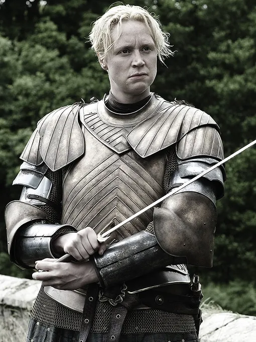 Дева-рыцарь Бриенна не сильна во флирте и искусстве свиданий, зато чувствует себя уверенно с мечом в руке. В жизни же актриса скорее дева, чем рыцарь, хотя силы духа ей не занимать.