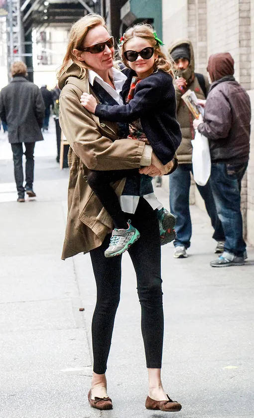 В свет Луна выходит пока нечасто, хотя иногда мама все-таки берет ее с собой на премьеры. Например, в июне 2025 года Ума появилась с младшей дочерью на показе спектакля «Эвридика» в Нью-Йорке. И публика могла отметить, как подросла Луна — фотографам девочка позировала в туфлях на каблуках и лонгсливе с открытыми плечами. Дополняла образ сумочка Dior — в моде и люксе Луна уже явно разбирается.