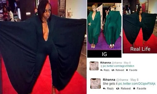 Певицу задело, что одна из поклонниц решила повторить ее образ на своем выпускном. 16-летняя Алексис Картер выглядела почти так же, как Рири в 2010 году в зеленом комбинезоне Alexandre Vauthier. Алексис сама сшила себе подобный наряд в темно-зеленом цвете и выложила фото в комбинезоне в Instagram (Социальная сеть признана экстремистской и запрещена на территории Российской Федерации), на что звезда отреагировала очень грубо. Рианна запостила в Twitter коллаж из ее фото и фото поклонницы, чей образ, по мнению артистки, не удался. «Ожидание и реальность», - съязвила Рианна.