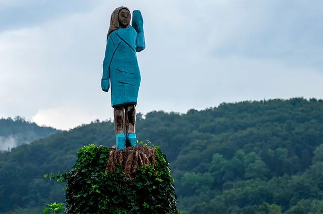 Супругу теперь уже экс-президента США увековечили в ее родном городе Севнице в Словении. Бывшая первая леди изображена в голубом платье, в котором она была на инаугурации мужа. В Сети скульптуру высмеяли, назвав деревянным истуканом. Позже памятник даже подожгли.