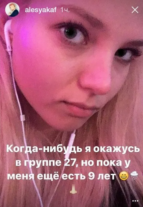 В середине ноября подписчики Instagram (Социальная сеть признана экстремистской и запрещена на территории Российской Федерации) Алеси обратили внимание на ее «сторис» (это видео и фото, которые исчезают через сутки после публикации). Модель выложила селфи с расширенными зрачками, которое подписала: «Хочу "снега"» (сленговое название кокаина — прим. ред.). Алеся оставила и еще один противоречивый комментарий к фотографии с картинками в виде снегопада и носа: «Когда-нибудь я окажусь в группе 27, но пока у меня есть еще 9 лет» («Клуб 27» — условное название круга культовых музыкантов, погибших в возрасте 27 лет — прим. ред.). Также Алеся постит фотографии, прикрепляя к ним «эмодзи» пилюль.