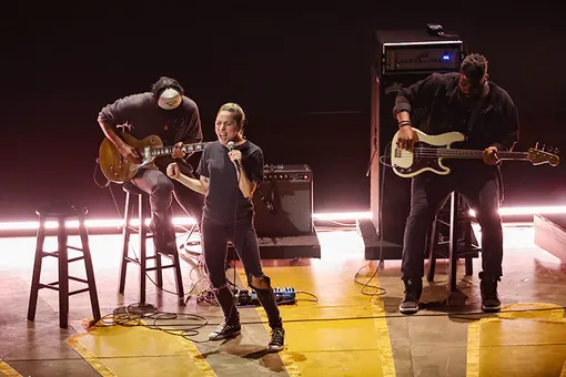 Впрочем, выступления див едва ли могли быть более непохожими друг на друга. Леди Гага поднялась на сцену в джинсах и без макияжа, а беременная Рири блистала в архивном платье Maison Margiela.