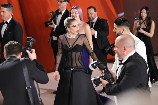 Леди Гага продемонстрировала невероятную прыть даже в длинном наряде Versace и на шпильках и бросилась на помощь оступившемуся фотографу.