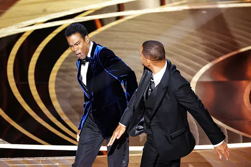 Со сцены Крис Рок отпустил шуточку в адрес Джады Пинкетт-Смит: это уже второй случай за вечер, когда кто-то высмеял открытые отношения Смитов, но комик высмеял и лысину Джады, и тут ее муж взбесился (Джада стремительно лысеет из-за аутоиммунного заболевания, отсюда такая прическа). Уилл выбежал на сцену, отвесил пощечину и вернулся на свое место, где еще долго сокрушался о чем-то.
